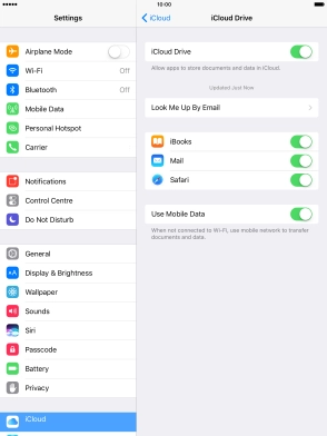 Press the indicator next to "iCloud Drive" to turn file synchronisation on or off.