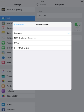 Press Password and key in the password for your email account.