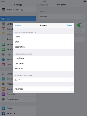 Press Username and key in the username for your email account.