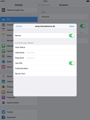 10. Enter outgoing server