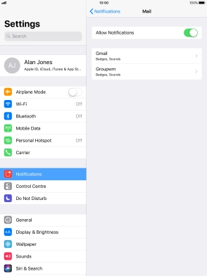 Press the indicator next to "Allow Notifications" to turn notifications for the selected application on or off.