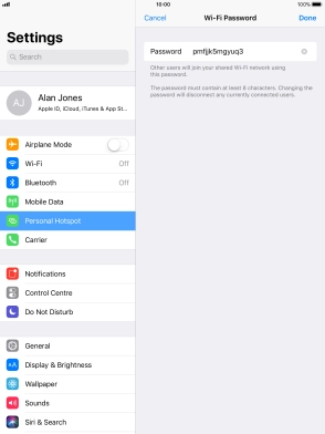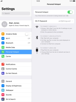 Use your Apple iPad Air iOS 11.0 as a personal hotspot