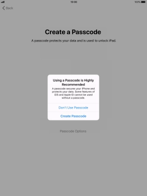 Follow the instructions on the screen to turn on use of lock code or press Don't Use Passcode.
