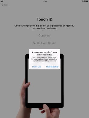Follow the instructions on the screen to turn on use of Touch ID or press Set Up Touch ID Later.