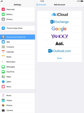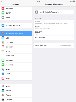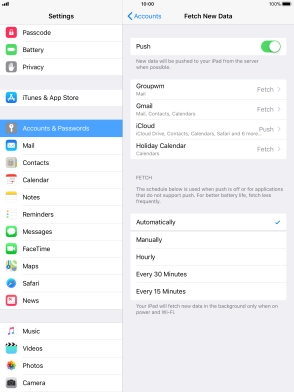 Press the required email account and follow the instructions on the screen to select settings for the specific account.
