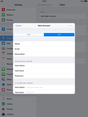 Press Username and key in the username for your email account.