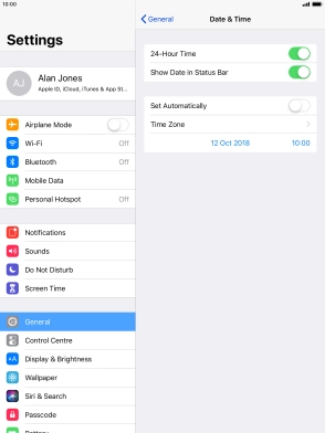 Set date and time on your Apple iPad Air iOS 12.0