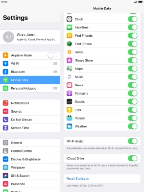 Turn Wi-Fi Assist on your Apple iPad Air iOS 12.0 on or off