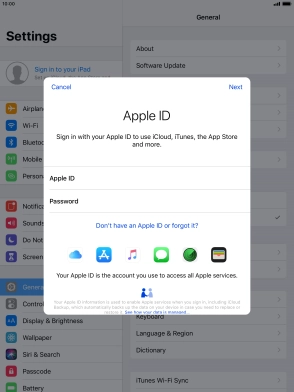 If you don t have an Apple ID, press Don't have an Apple ID or forgot it? and follow the instructions on the screen to create an Apple ID.