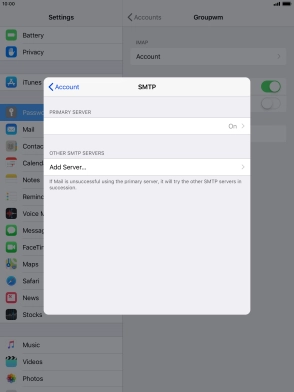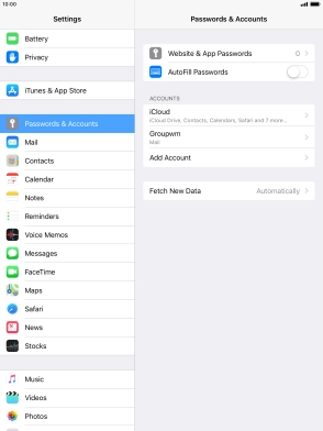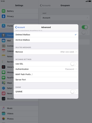 Press the required email account and follow the instructions on the screen to select settings for the specific account.