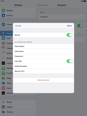 Press Password and key in the password for your email account. Please note that if you're using Vodafone's outgoing server, leave the password field empty.