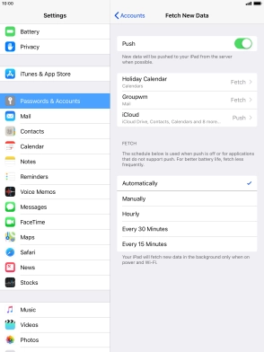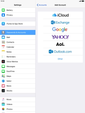 Press the required email account and follow the instructions on the screen to select settings for the specific account.