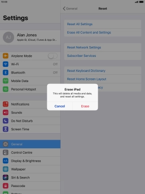 Press Erase. Wait a moment while the factory default settings are restored. Follow the instructions on the screen to set up your tablet and prepare it for use.