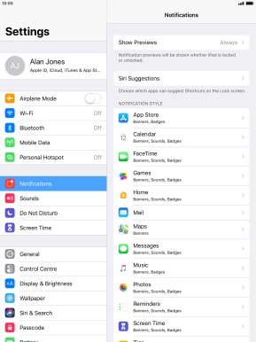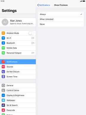 To select notification preview only when your tablet is unlocked, press When Unlocked.