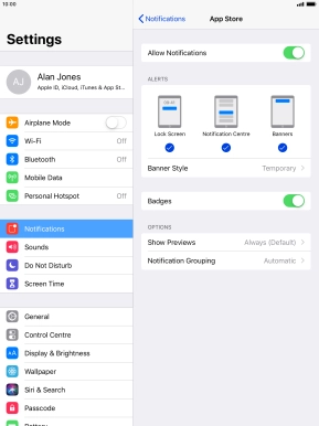 Press the indicator next to "Allow Notifications" to turn notifications for the selected application on or off.