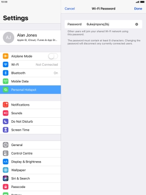 3. Key in the password for personal hotspot