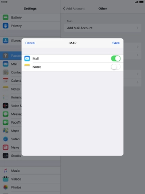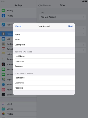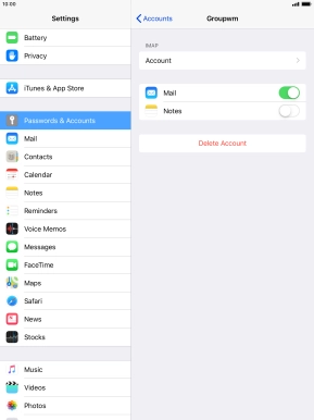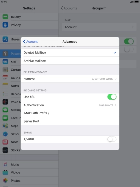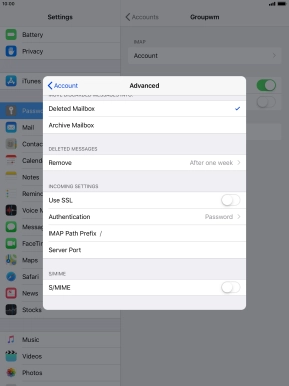 Press the required email account and follow the instructions on the screen to select settings for the specific account.