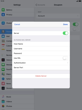 Press Password and key in the password for your email account. Please note that if you're using Vodafone's outgoing server, leave the password field empty.