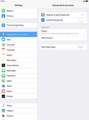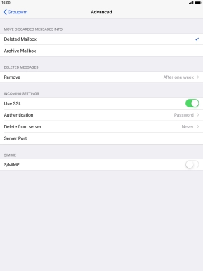 Press the required email account and follow the instructions on the screen to select settings for the specific account.