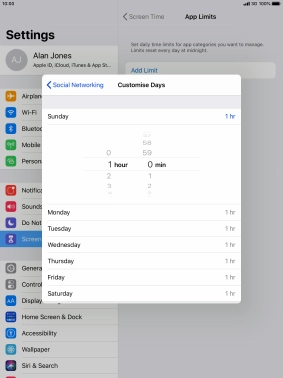 5. Select days for time limits of app usage