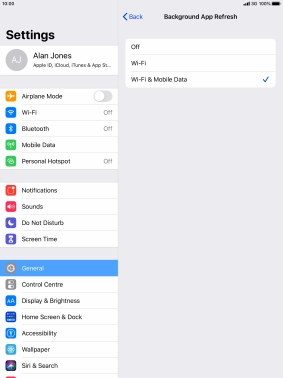 Select settings for background refresh of apps on your Apple iPad mini (2019) iPadOS 13.2