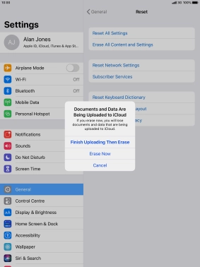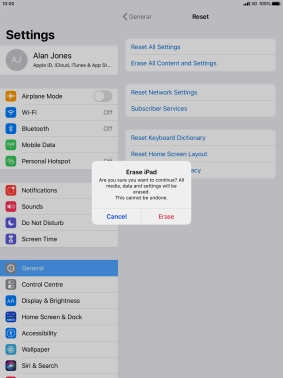 Key in the password for your Apple ID and press Erase. Wait a moment while the factory default settings are restored. Follow the instructions on the screen to set up your tablet and prepare it for use.