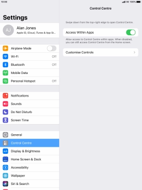 Select settings for Control Centre on your Apple iPad mini (2019) iPadOS 13.2