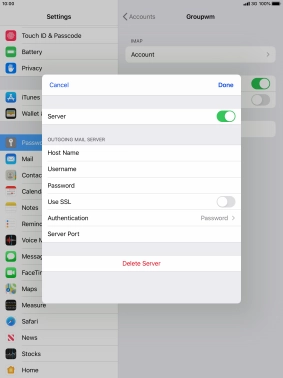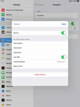 Press Password and key in the password for your email account. Please note that if you're using Vodafone's outgoing server, leave the password field empty.