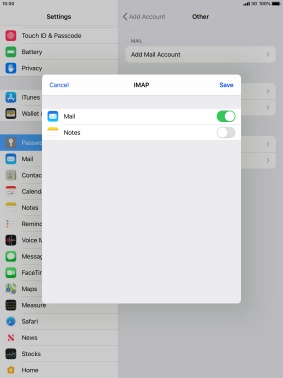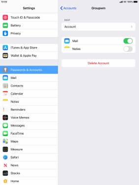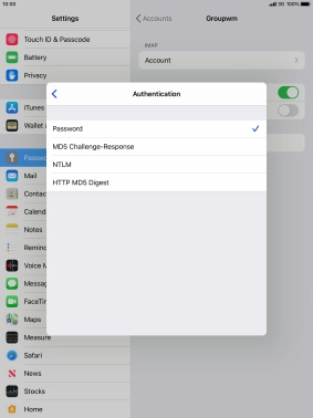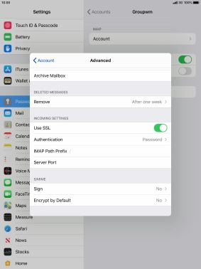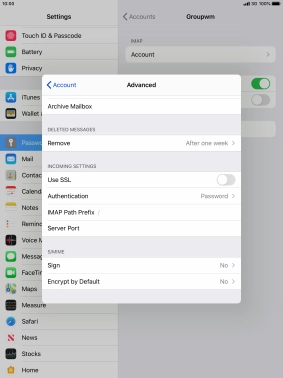 Press the required email account and follow the instructions on the screen to select settings for the specific account.