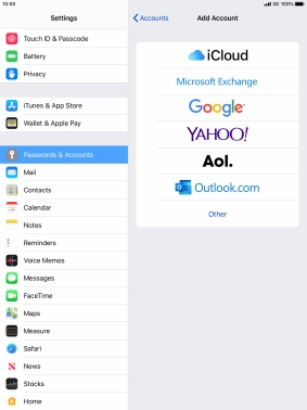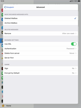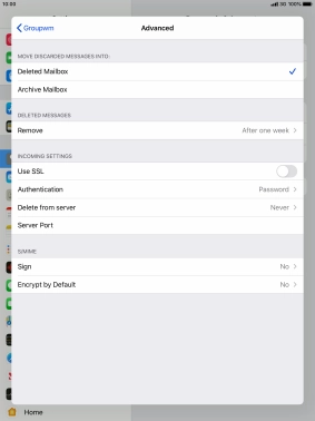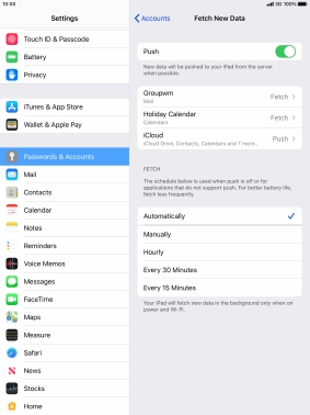 Press the required email account and follow the instructions on the screen to select settings for the specific account.