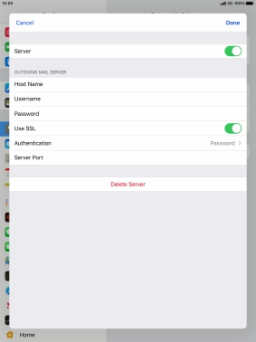 Press Password and key in the password for your email account. Please note that if you're using Vodafone's outgoing server, leave the password field empty.