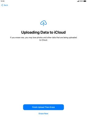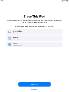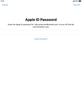 Key in the password for your Apple ID and press Turn Off. Wait a moment while the factory default settings are restored. Follow the instructions on the screen to set up your tablet and prepare it for use.