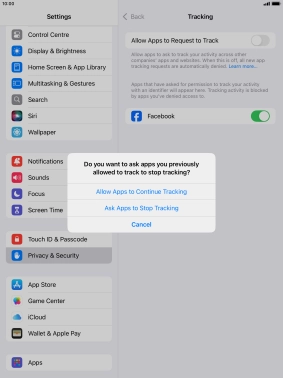 Press the indicator next to "Allow Apps to Request to Track" to turn the function on or off.