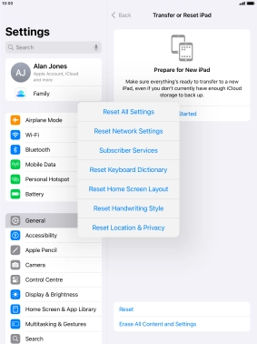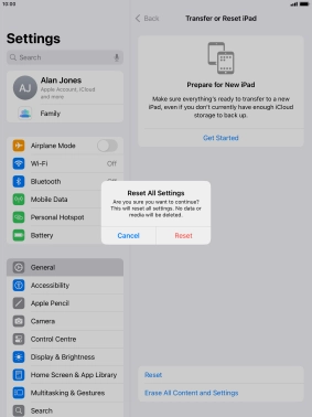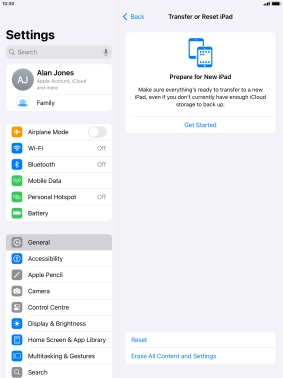 Press Transfer or Reset iPad.