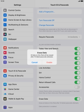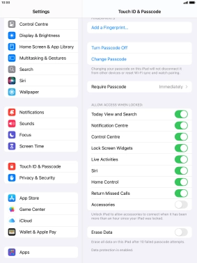 Turn use of lock code on your Apple iPad mini (2019) iPadOS 18 on or off