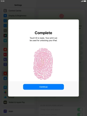 You can set your tablet to use your fingerprint as lock code or to authorise iTunes and App Store purchases. To use Touch ID, you need to turn on the lock code.
