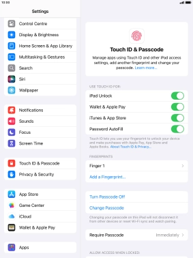 You can set your tablet to use your fingerprint as lock code or to authorise iTunes and App Store purchases. To use Touch ID, you need to turn on the lock code.