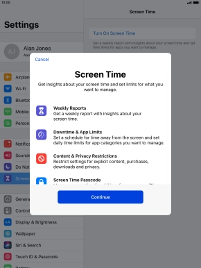 Select Screen Time settings on your Apple iPad mini 3 iOS 12.0