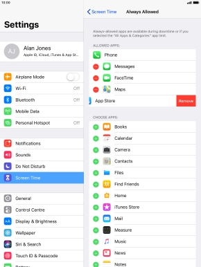 Press the remove icon next to the required app to remove it from the list of allowed apps during Downtime.