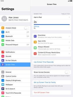 Press Set Up Screen Time for Family and follow the instructions on the screen to select family Screen Time settings.