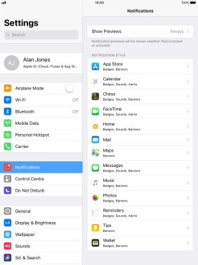 To select notification preview only when your tablet is unlocked, press When Unlocked.