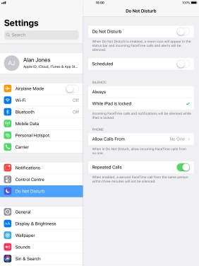 3. Select period for Do Not Disturb