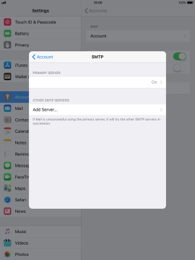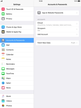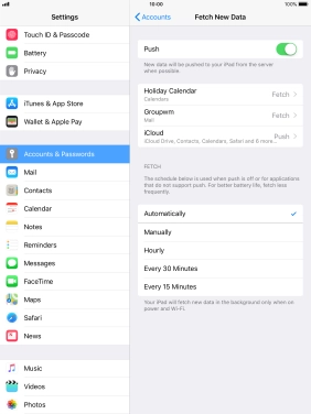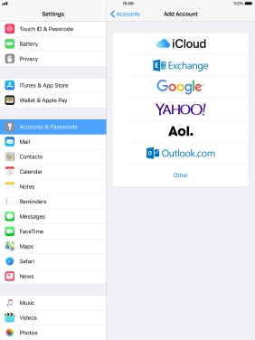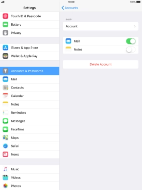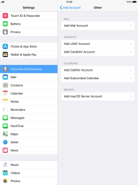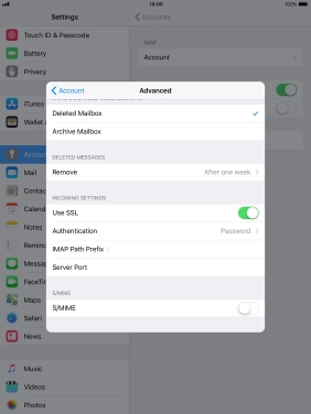 Press the required email account and follow the instructions on the screen to select settings for the specific account.