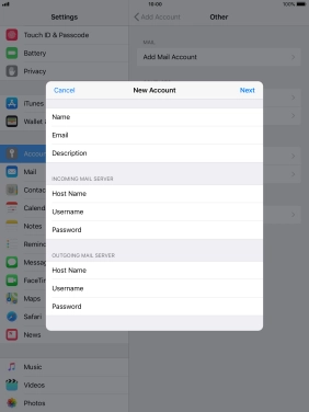 If this screen is displayed, you email account has been recognised and set up automatically. Follow the instructions on the screen to key in more information and finish setting up your tablet.