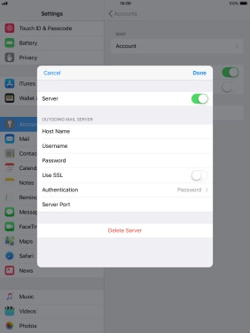 Press Password and key in the password for your email account. Please note that if you're using Vodafone's outgoing server, leave the password field empty.
