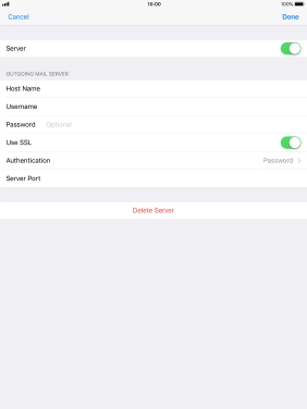 Press Password and key in the password for your email account. Please note that if you're using Vodafone's outgoing server, leave the password field empty.