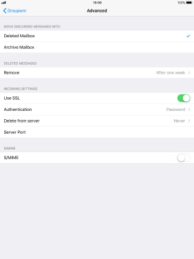 Press the required email account and follow the instructions on the screen to select settings for the specific account.