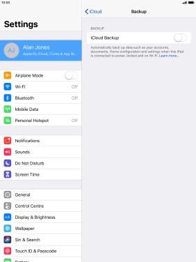 Press iCloud Backup.