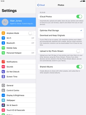 If you turn on the function, all new pictures on your tablet are synchronised with other devices via iCloud.