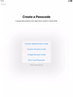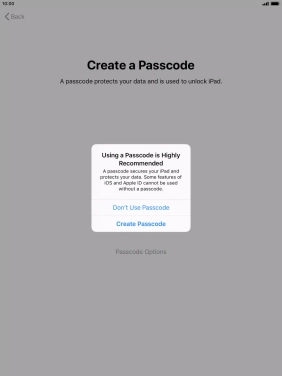 Follow the instructions on the screen to turn on use of lock code or press Don't Use Passcode.